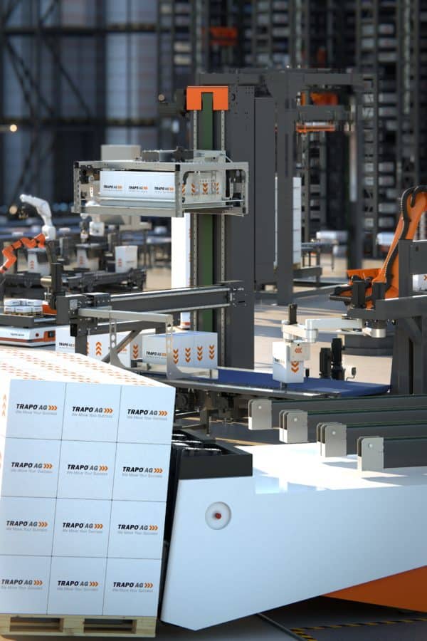 TRAPO automatizza i cicli dell’intralogistica con soluzioni destinate al prelievo, , la (de)palettizzazione, l’imballaggio, il convogliamento, lo stoccaggio, la tecnica di smistamento e distribuzione, nonché il carico e lo scarico.
