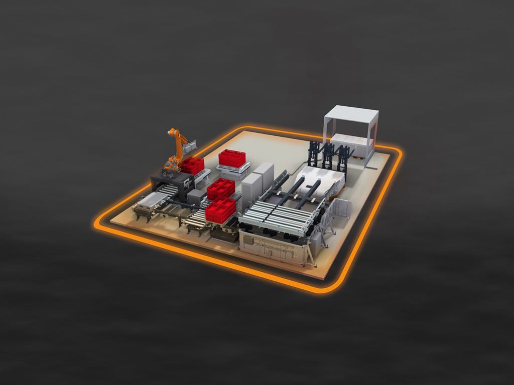 Seine Aufgaben: depallettieren, parallel palettieren und präzise ausrichten – alles synchron und im laufenden Takt. Dank ausgefeilter Sensorik und intelligenter Steuerungslogik läuft jeder Schritt geregelt, sicher und hocheffizient ab. So entsteht ein Prozess, der Durchsatz maximiert und Stillstand minimiert.